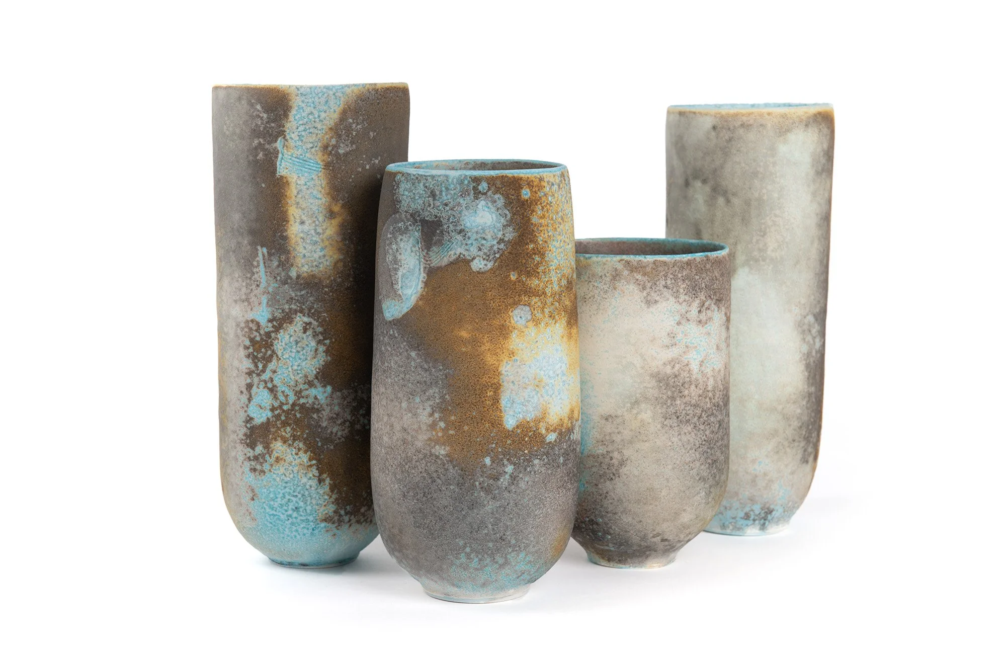“I make soda-fired porcelain forms that contain the qualities of art and utensil. Archetypal forms are touchstones in my practice; vessels made for a contemporary context can be solitary and contemplative or ceremonial, for everyday or a special occasion. I question the functional nature of objects.”