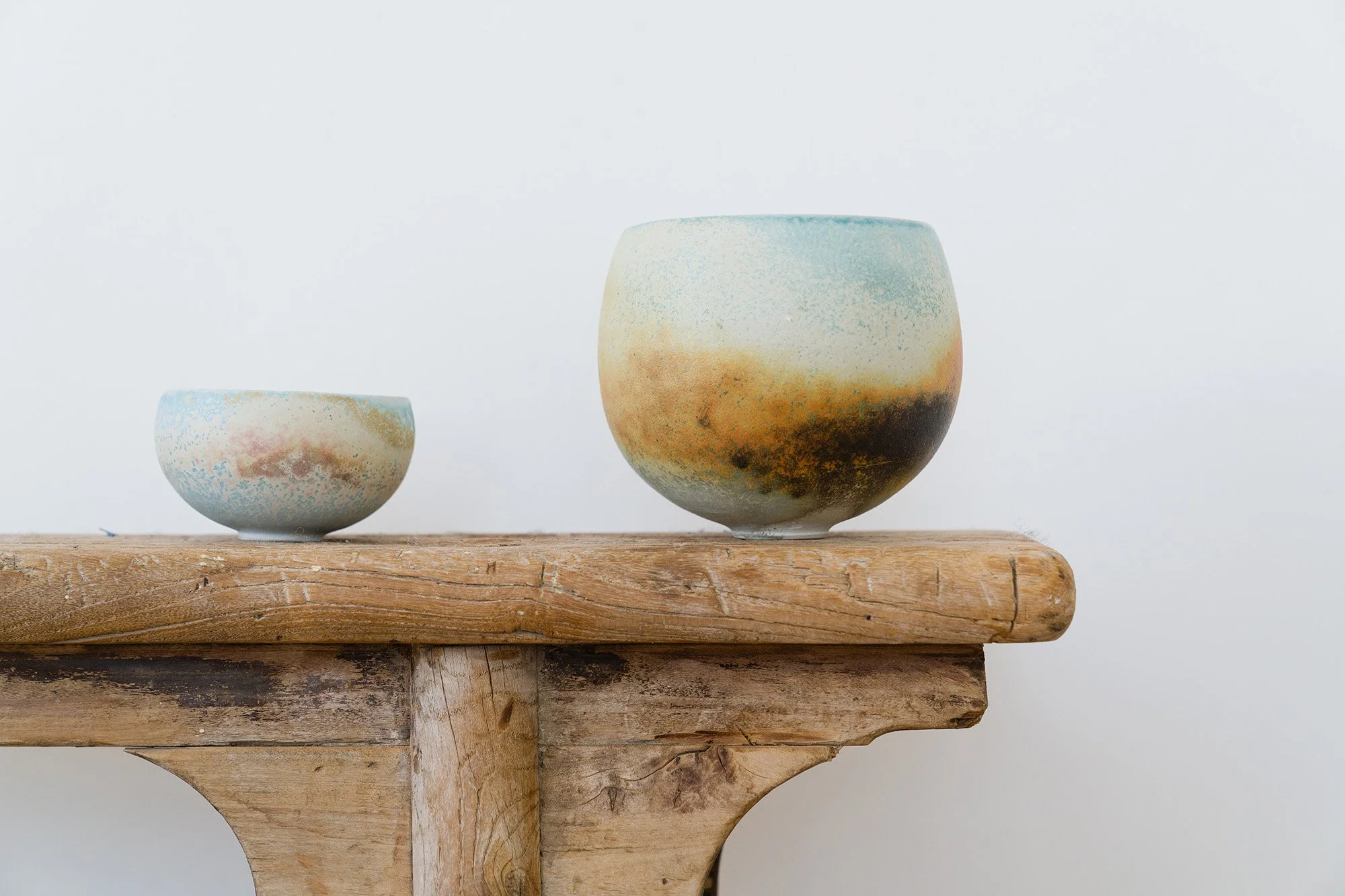Porcelain clay is a complex medium known for its delicate fineness and translucent nature. Each of the hand-thrown porcelain vessel forms Jack makes is unique, with distinctive markings from the flame and atmosphere of the soda kiln.